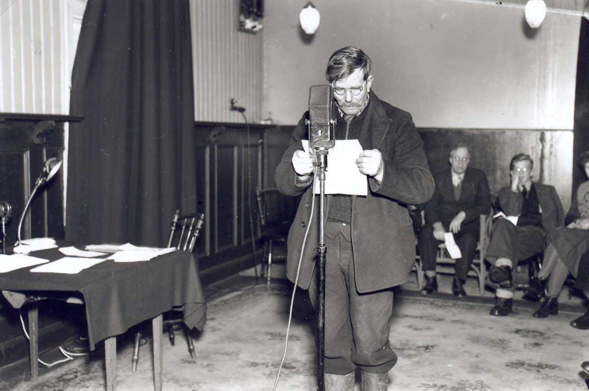 En man läser upp ett brev, kanske en hälsning, i radio.