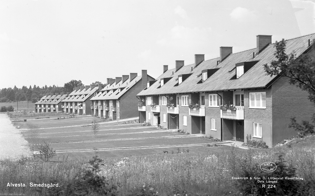 Vy över de nybyggda radhusen i Alvesta Smedsgård.