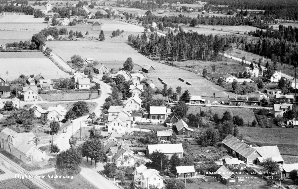 Vy över Väckelsångs samhälle med kyrkan i bakgrunden.