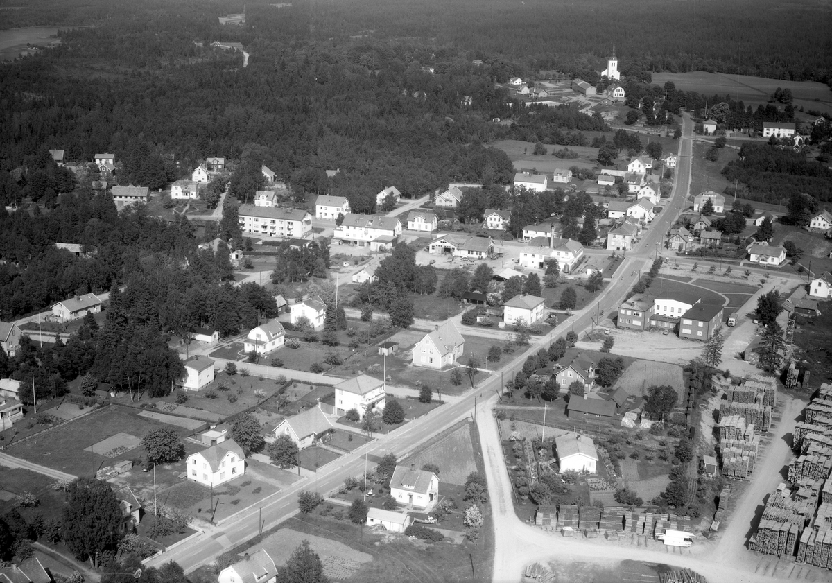 Vy över Lidhult med kyrkan i bakgrunden.