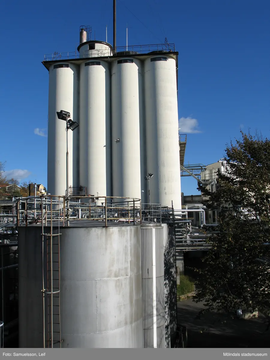 Titel: Tankar vid Soabs industrianläggning i Mölndals Kvarnby, år 2007. I bakgrunden silobyggnaden. Anläggningen användes vid fototillfället av Hexion Speciality Chemicals Sweden AB.
