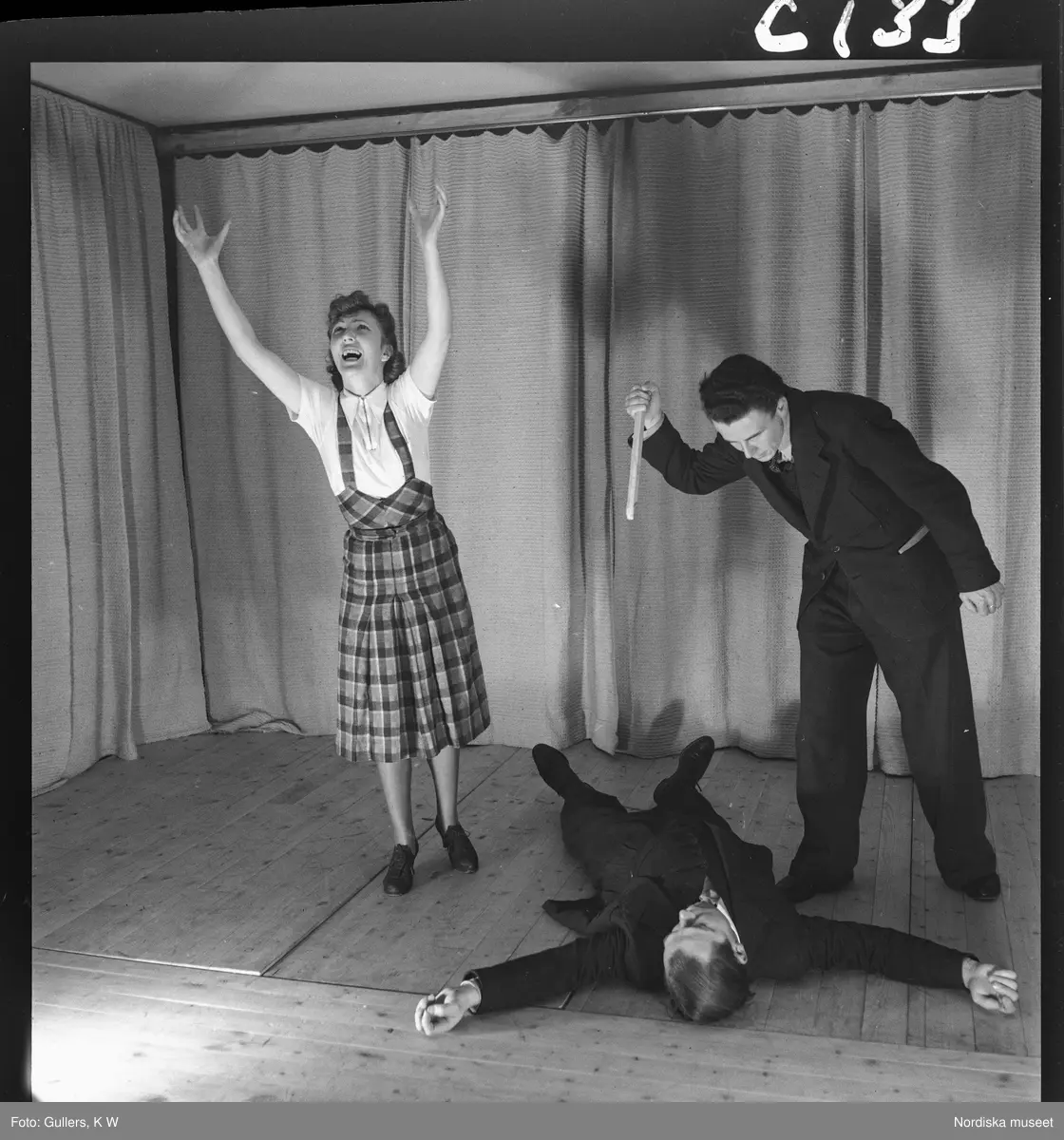 505 Wityansky Teaterskola för Allers. Tre teaterelever agerar på scen.