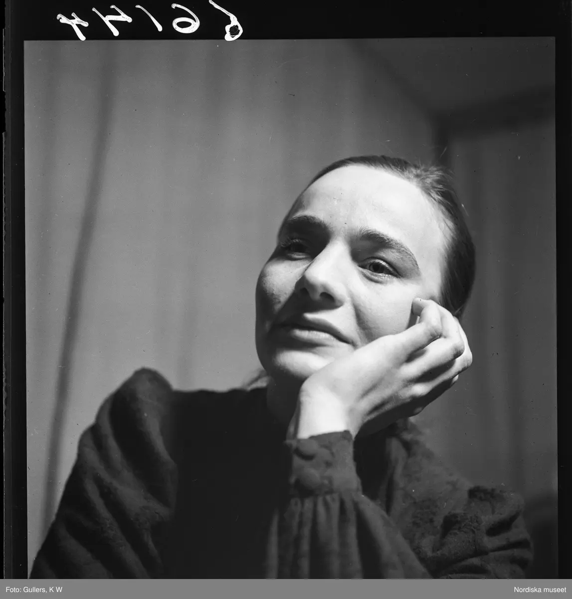 505 Wityansky Teaterskola för Allers. Porträtt av en ung kvinna som lutar huvudet i handen.