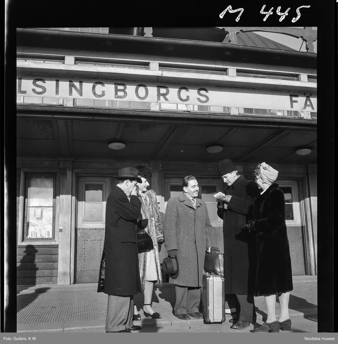 513 E Redaktör Runar Karlströmer hem från Danmark. Runar Karlströmer med sällskap utanför Hälsingborgs färjeterminal.