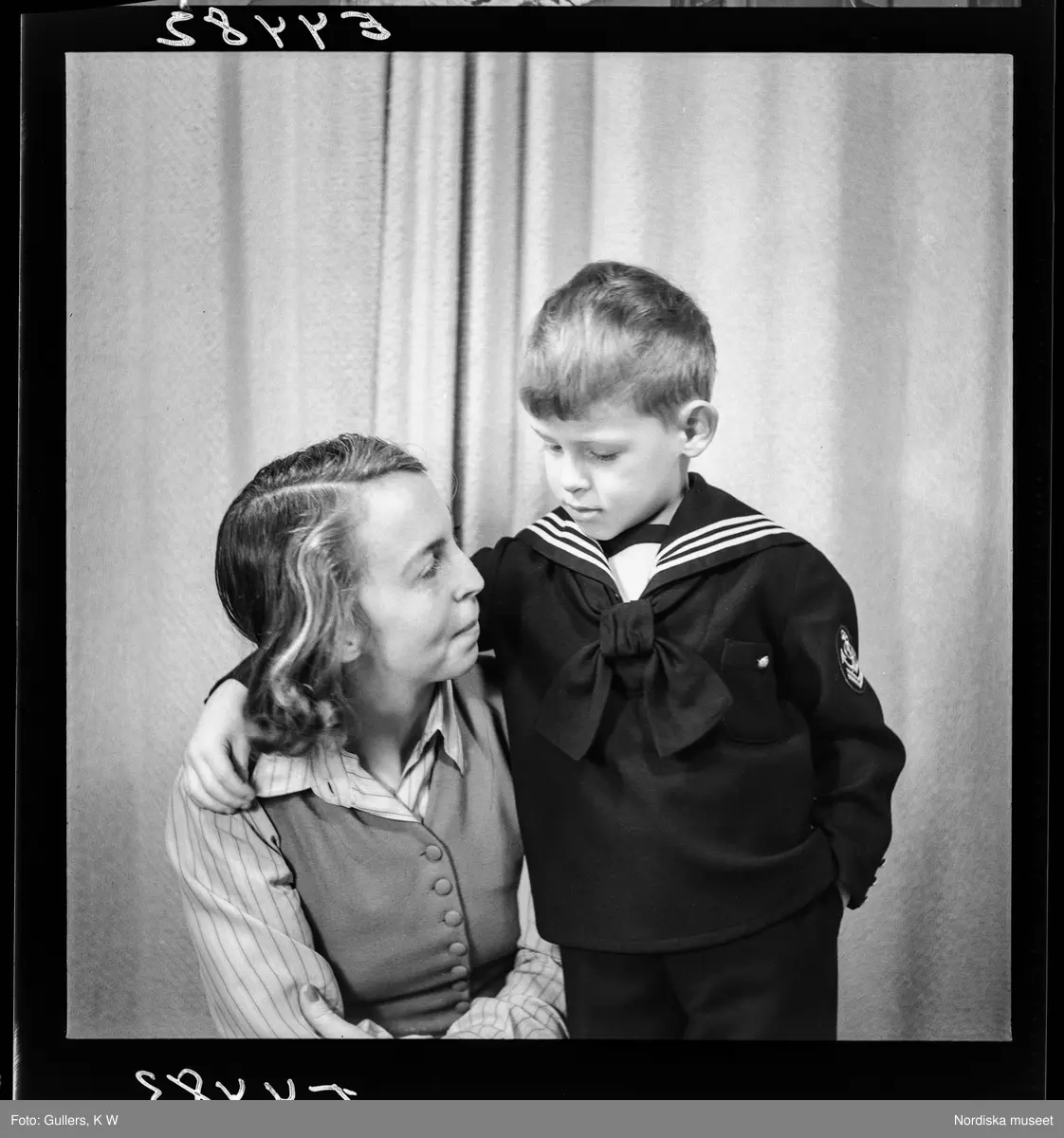 513 Karlströmer med fru och son. Porträtt av mor och son. Karin och Krister Karlströmer.