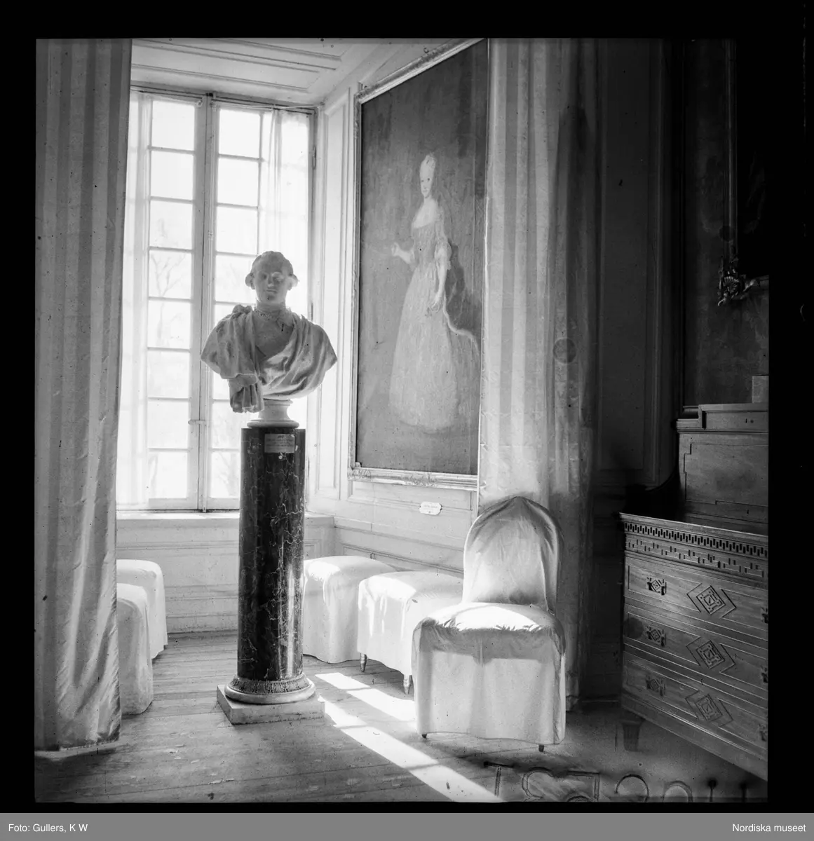 511 Gripsholms Slott för Allers. Interiör på slottet. En byst står på piedestal i en fönstersmyg.