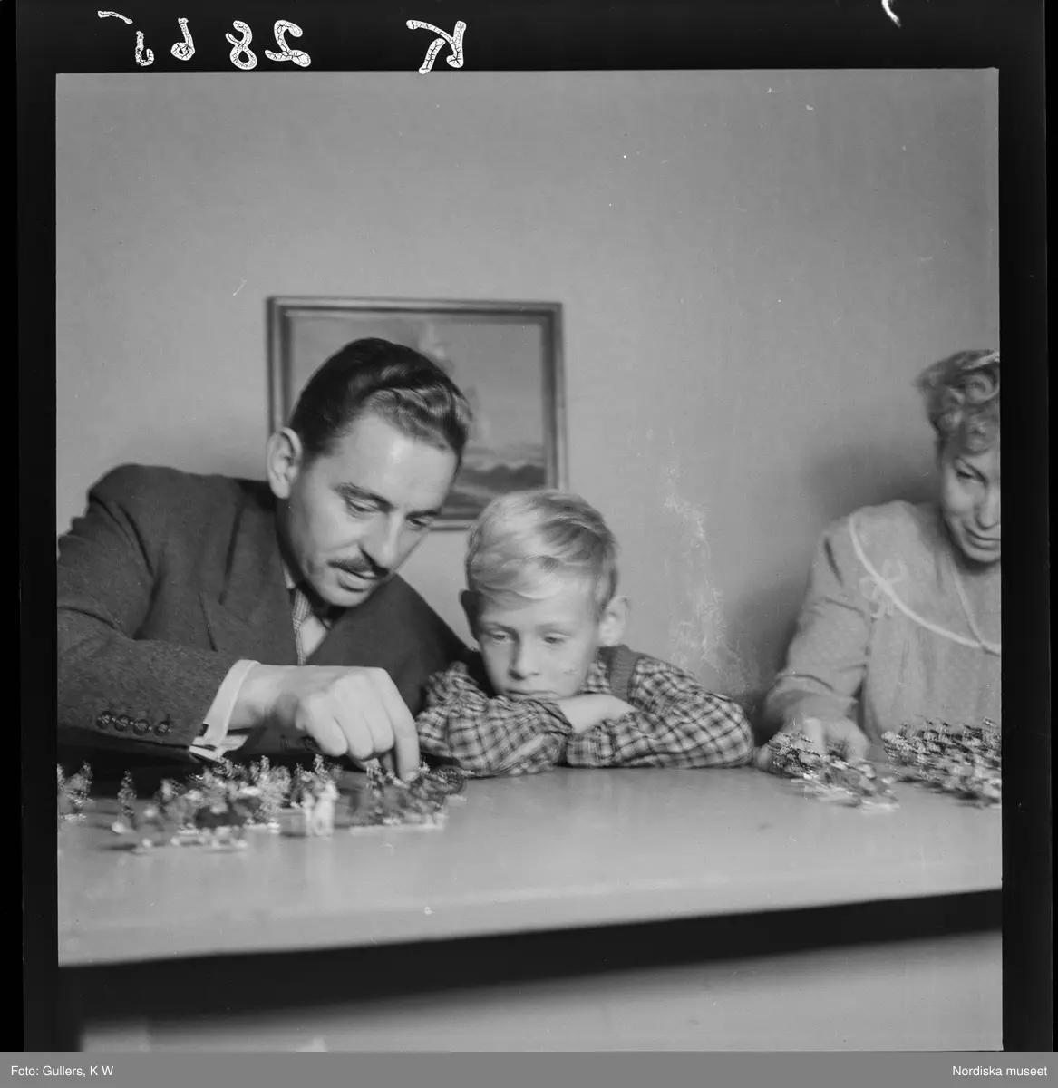 513 B Red. Karlströmer. Runar Karlströmer och hans son leker med tennsoldater.