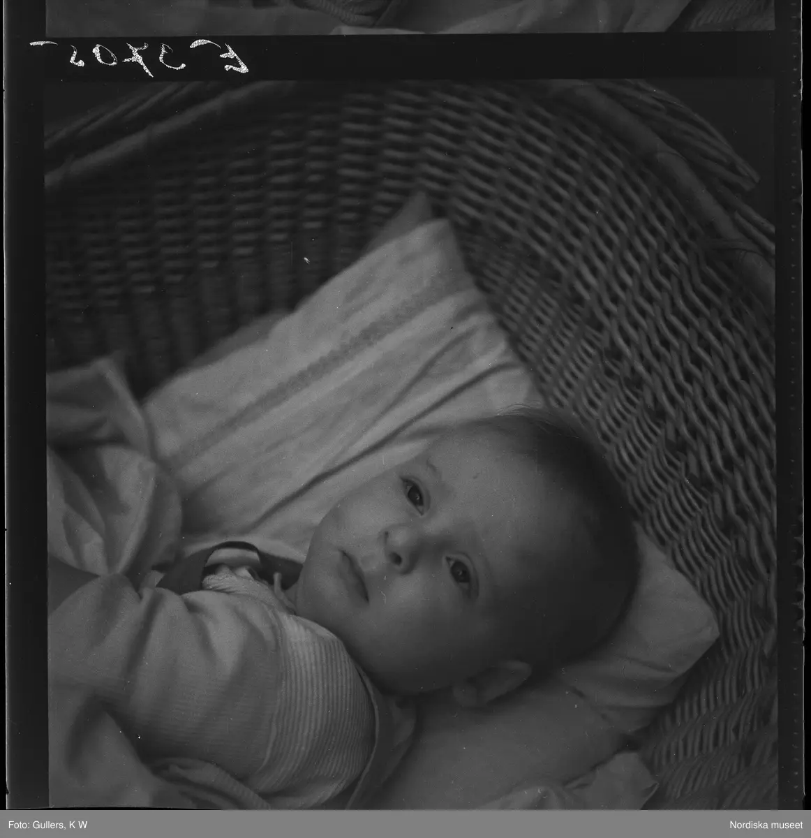 513 Red. Karlströmer barn. Ett litet barn i sin rottingsäng/vagga.