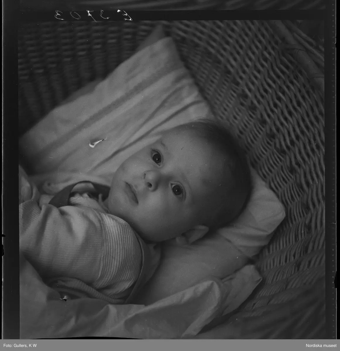 513 Red. Karlströmer barn. Ett litet barn i sin rottingsäng/vagga.