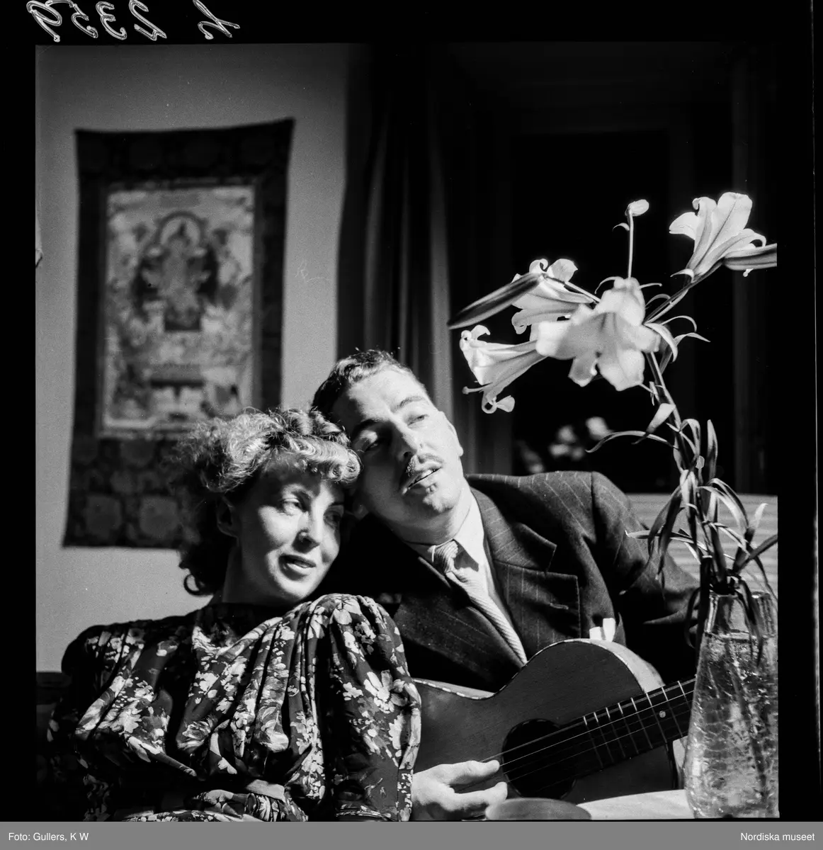 513 A Runar Karlströmer Hemmiljö. Man med gitarr sitter tätt intill kvinna.