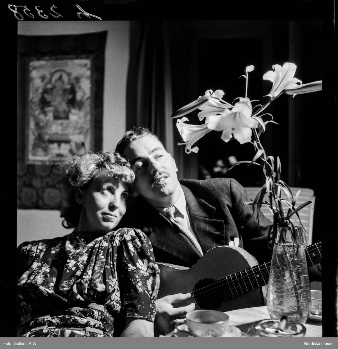 513 A Runar Karslströmer Hemmiljö. Runar Karlströmer spelar gitarr för sin fru.