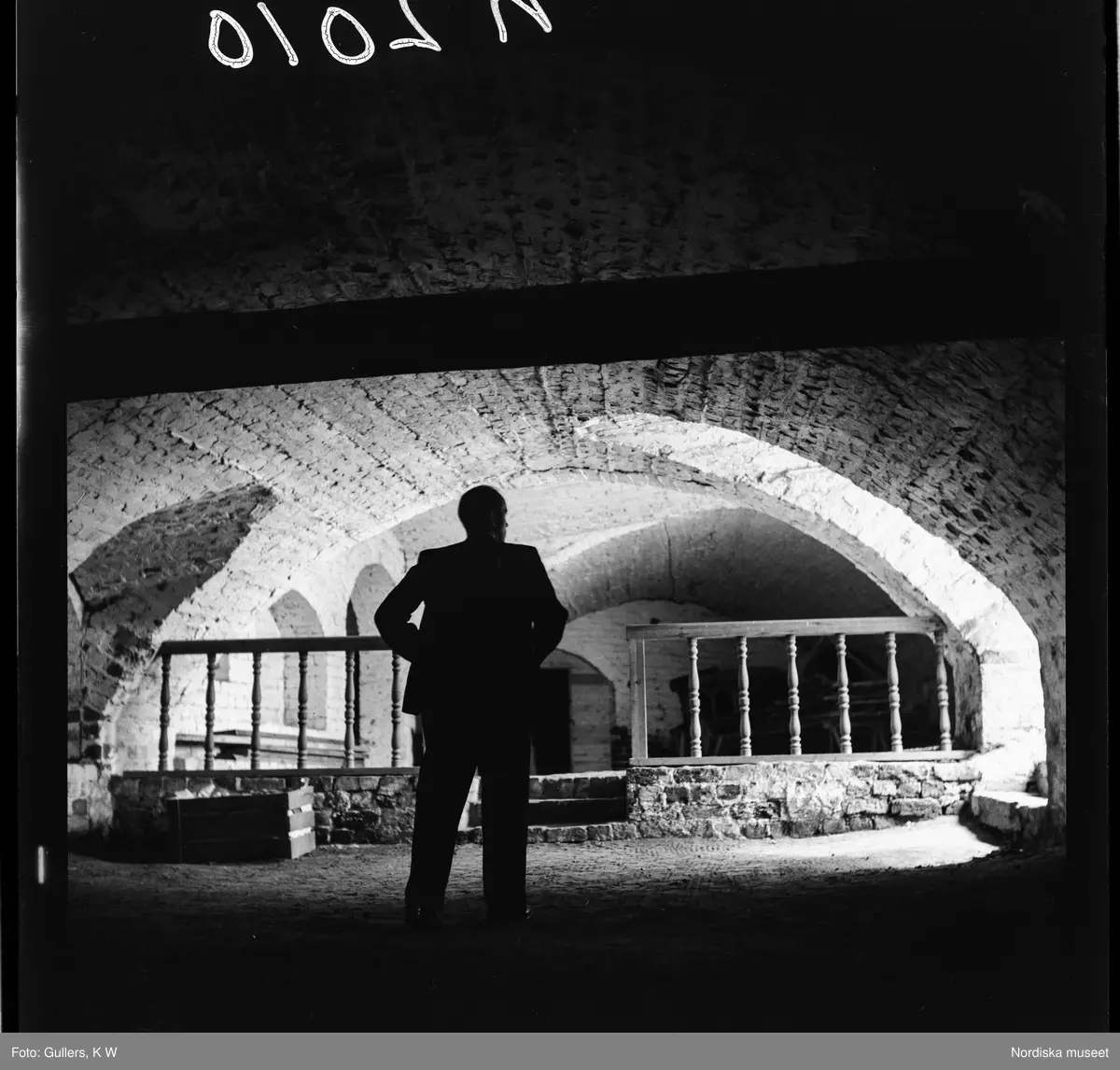 511 B Gripsholms Slott. En man bland stenvalven på Gripsholms slott.