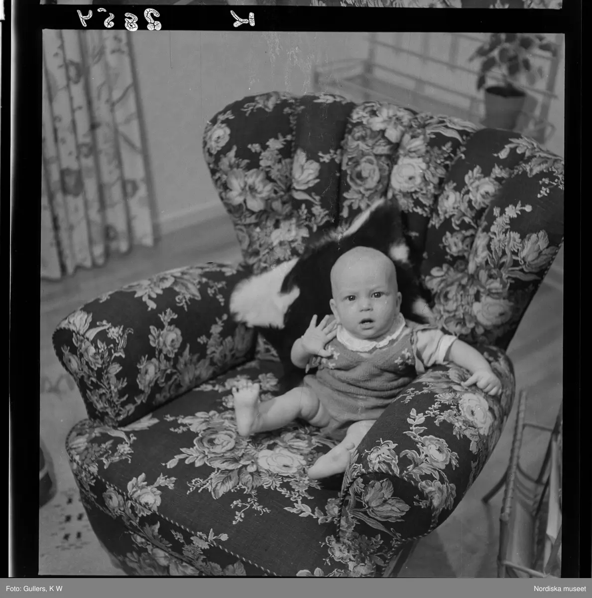 513 B Red. Karlströmer. Ett litet barn i en blommig fåtölj.