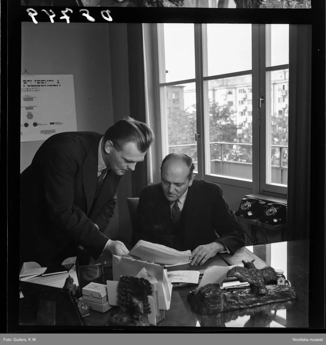 534 Polisskolan. Vid ett skrivbord. Ett par män läser gemensamt igenom dokument.