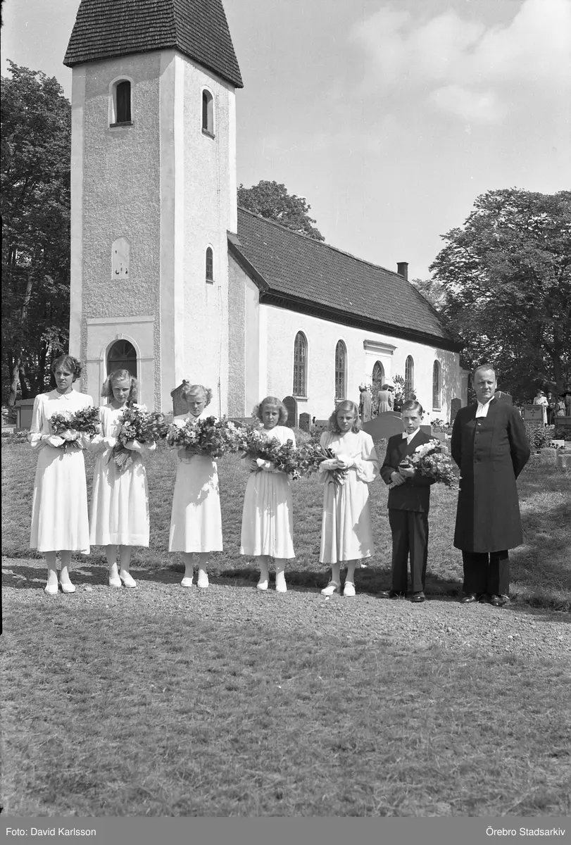 Konfirmander och präst vid Norrbyås kyrka, 1940-tal