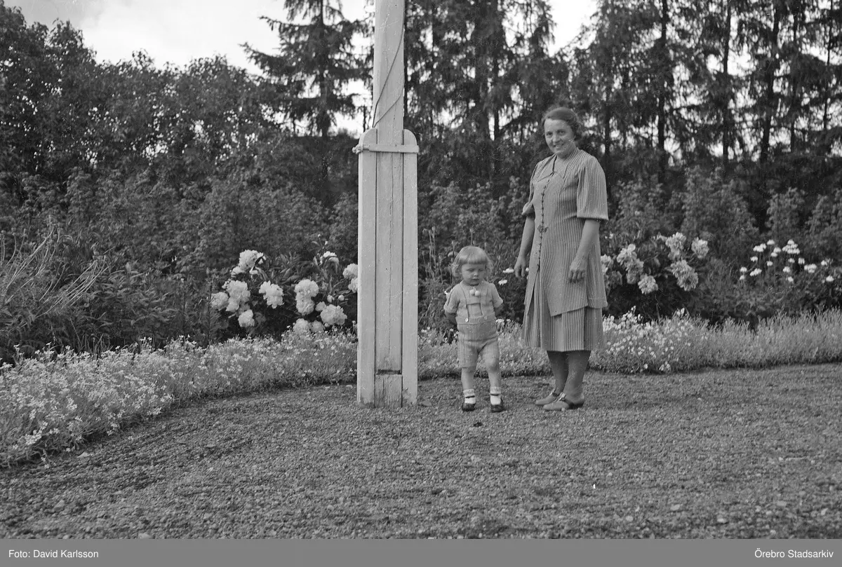 Elna Blomé med flicka i trädgården i Lysinge, 1940-tal