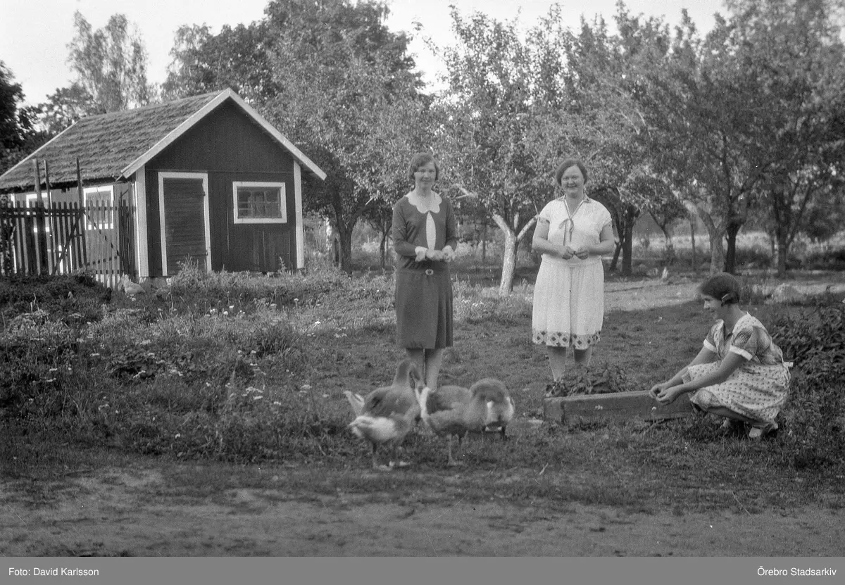 Matning av gäss vid Karlstorp, 1940-tal