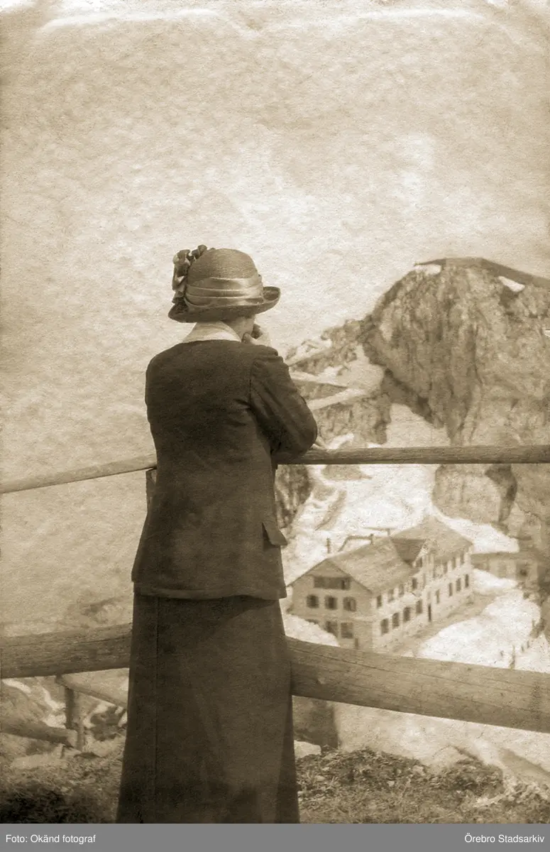 Ung kvinna vid utsiktsplats i Frankrike, 1919