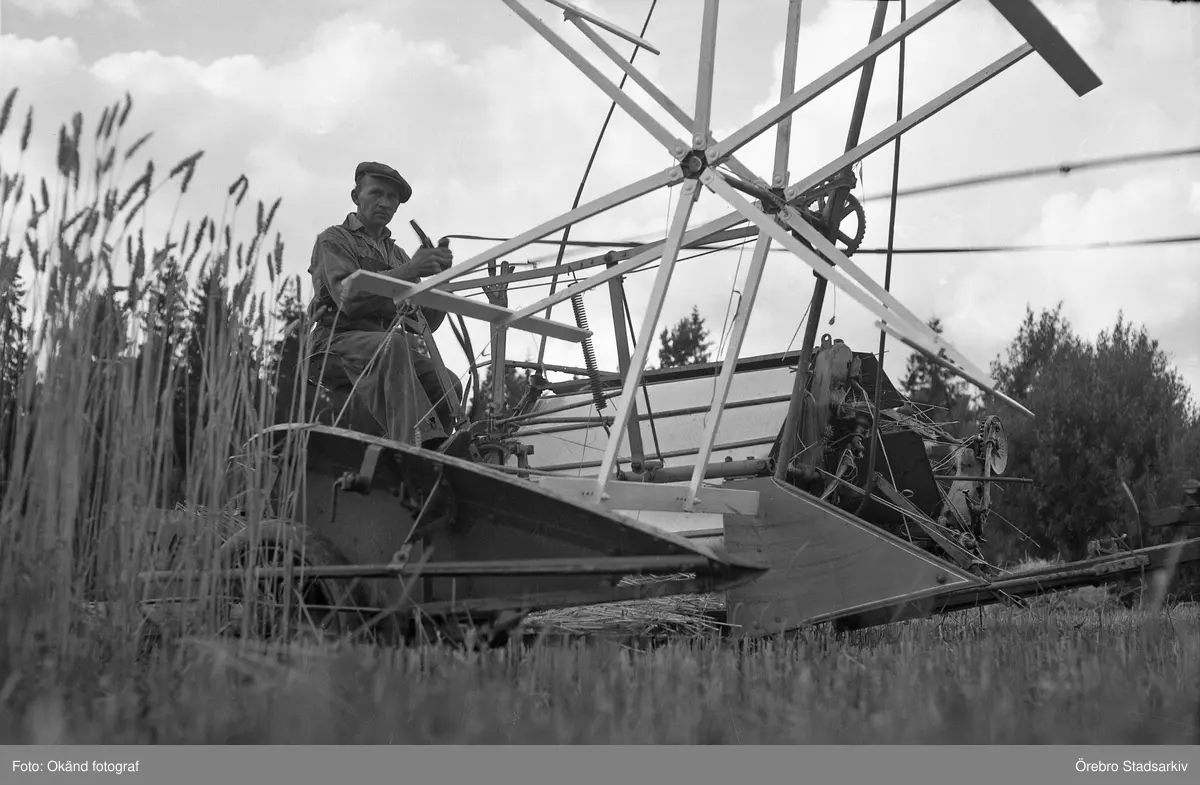 David Karlsson på självbindare vid Karlstorp, 1940-tal