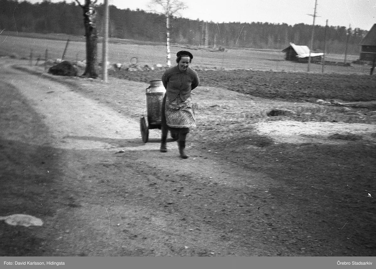Maja Karlsson med mjölkkärra, 1940-tal