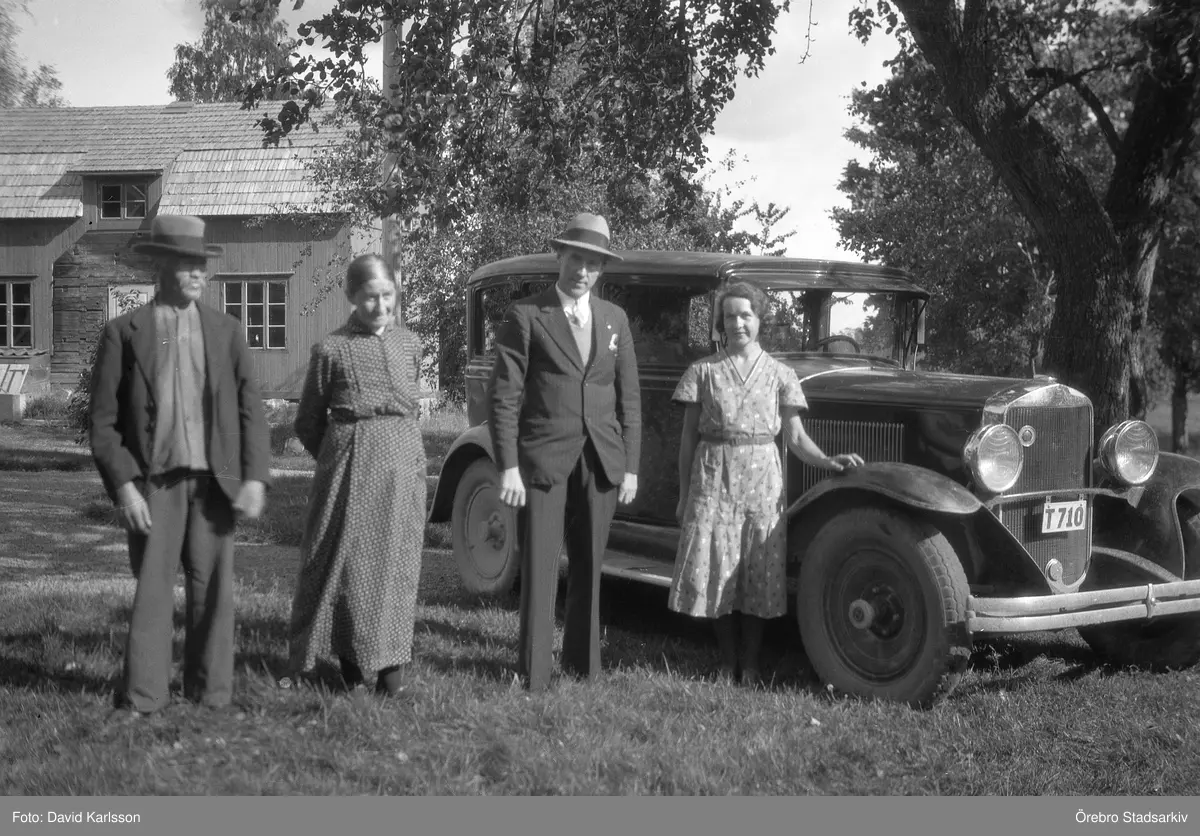 Gruppfoto framför huset i Karlstorp, 1940-tal