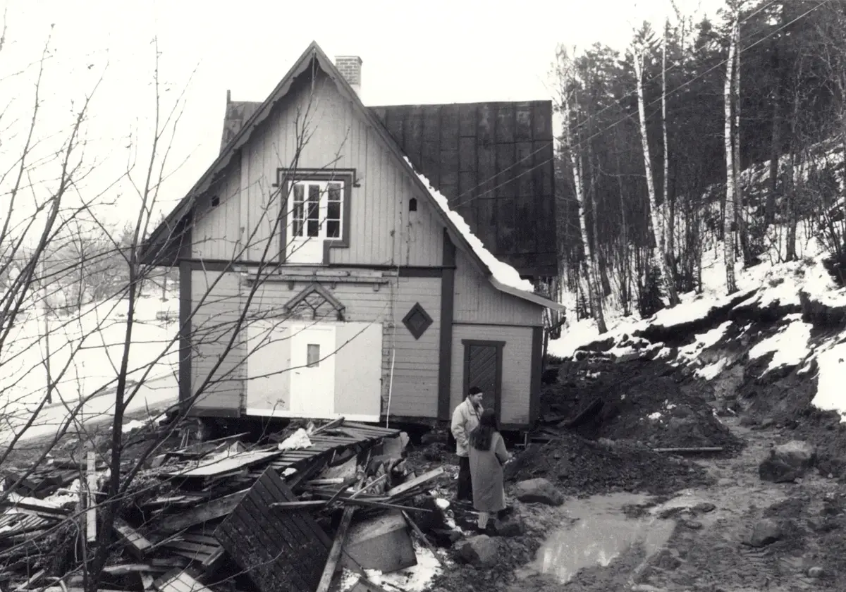 Hembygdsgårdar. Flyttning av Ingarö hembygdsmuseum vintern 1988.