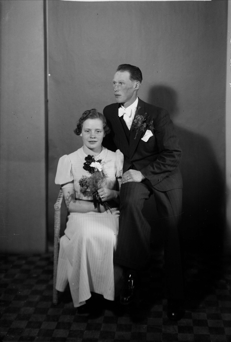 Bröllopsporträtt - "Elsie Ivarsson, Tigertorp, Harg", Uppland 1941