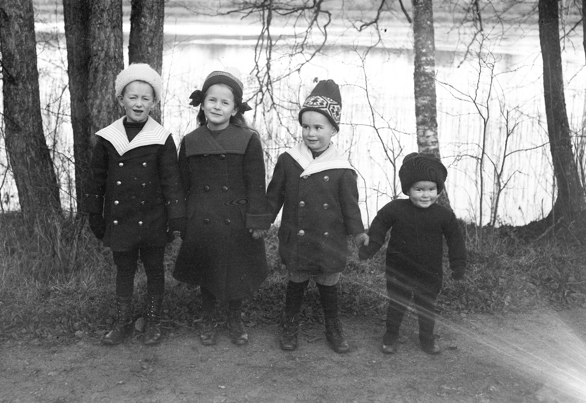 Fyra vinterklädda barn