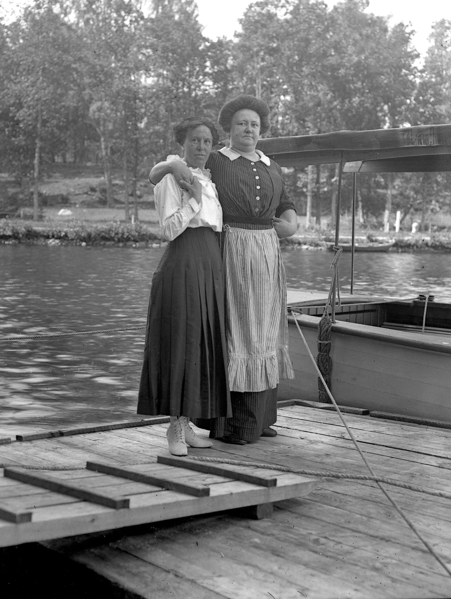 Hedvig från värdshuset med piga vid passagerarbåtsbrygga