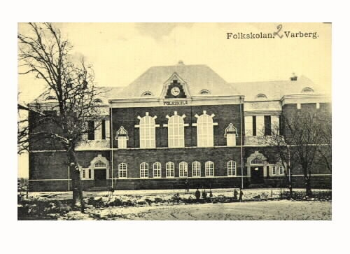 Vykort, "Folkskolan Varberg."Södra folkskolan, Rosenfredsskolan, kv Folkskolan 1, Varberg. Fasad mot norr.