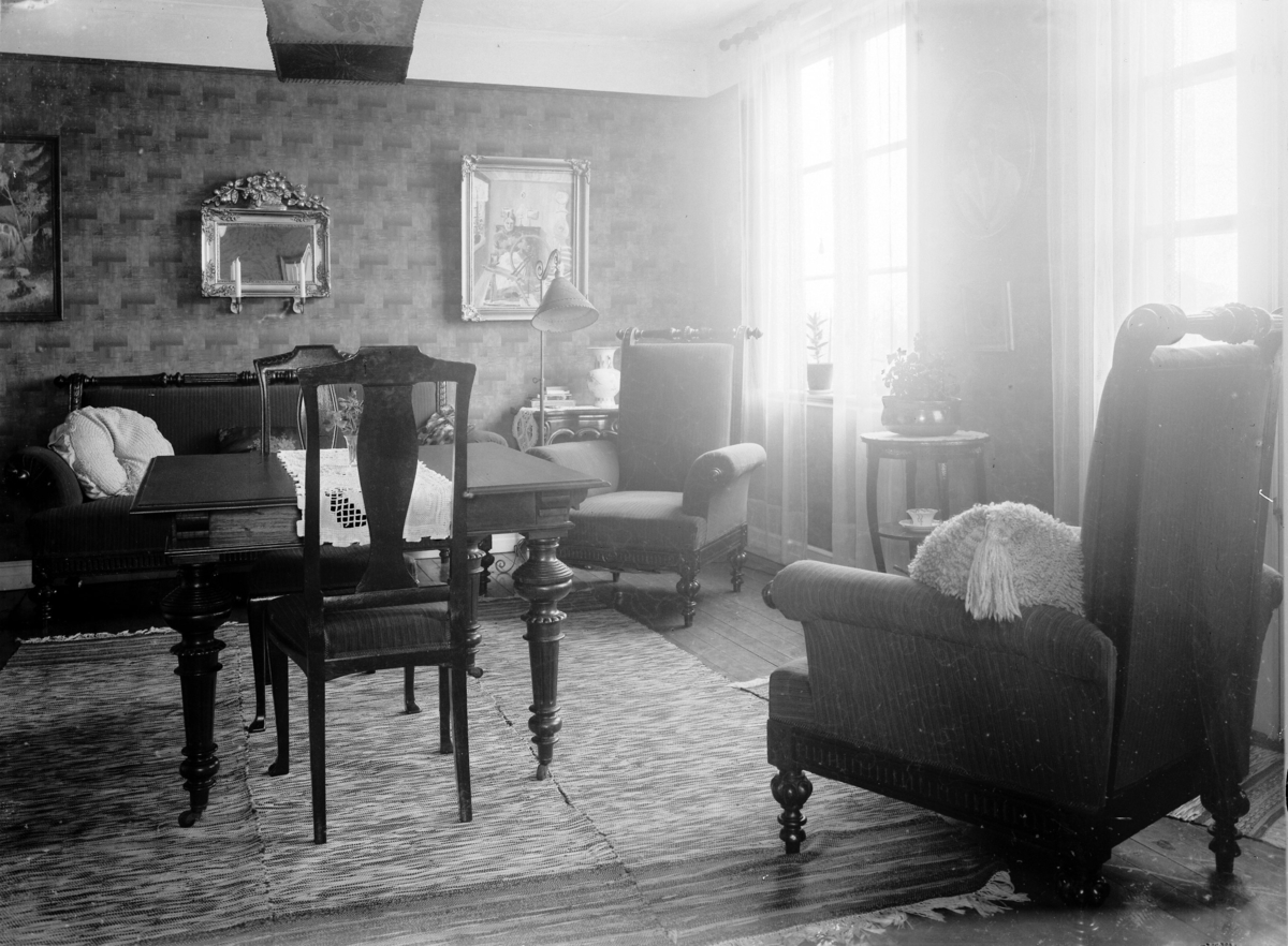 En salong. Enligt Walter Olsons journal är bilden beställd av ingenjör Karl Björklund ifrån Stensviksvägen 18 i Kalmar.