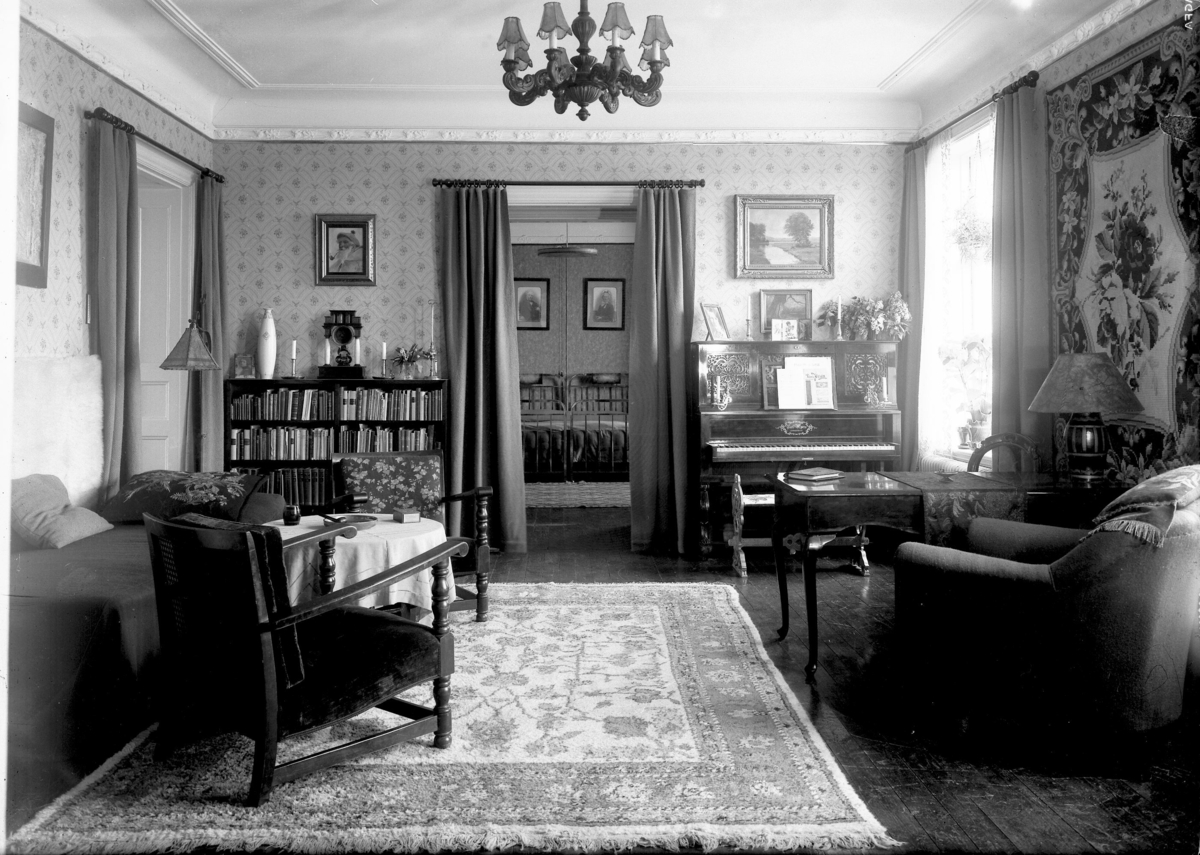 Ett vardagsrum. Enligt Walter Olsons journal är bilden beställd av ingenjör Westergren ifrån Bremergatan 11 i Kalmar.