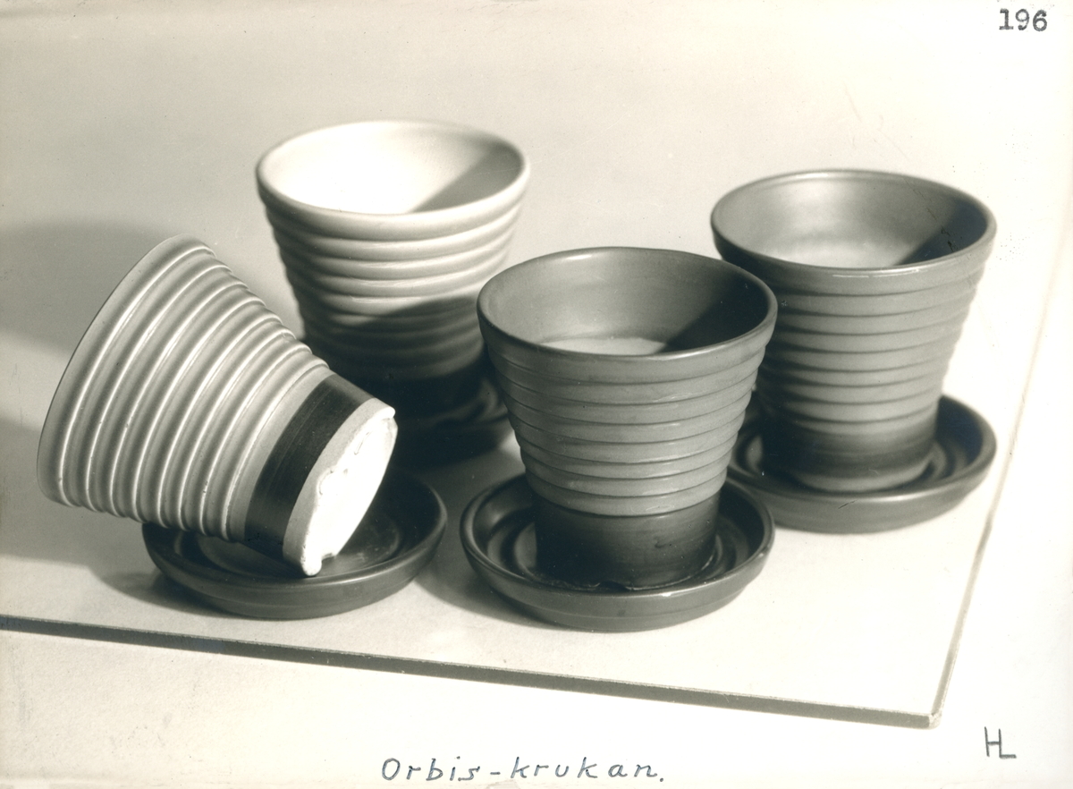 Krukor av modell "Orbis" från Bo Fajans, formgivare Ewald Dahlskog, tidigt 1900-tal.