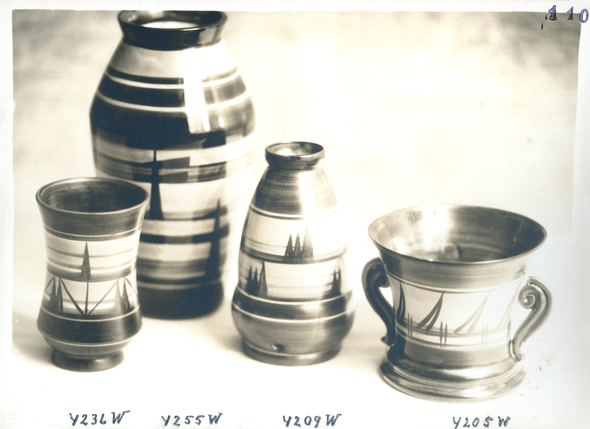 Vaser och en kruka från Bo Fajans, formgivare Maggie Wibom, tidigt 1900-tal.