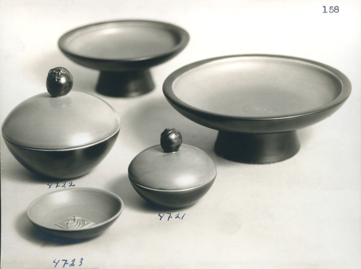 Bonbonjärer och ett askfat från Bo Fajans, formgivare Maggie Wibom, tidigt 1900-tal.