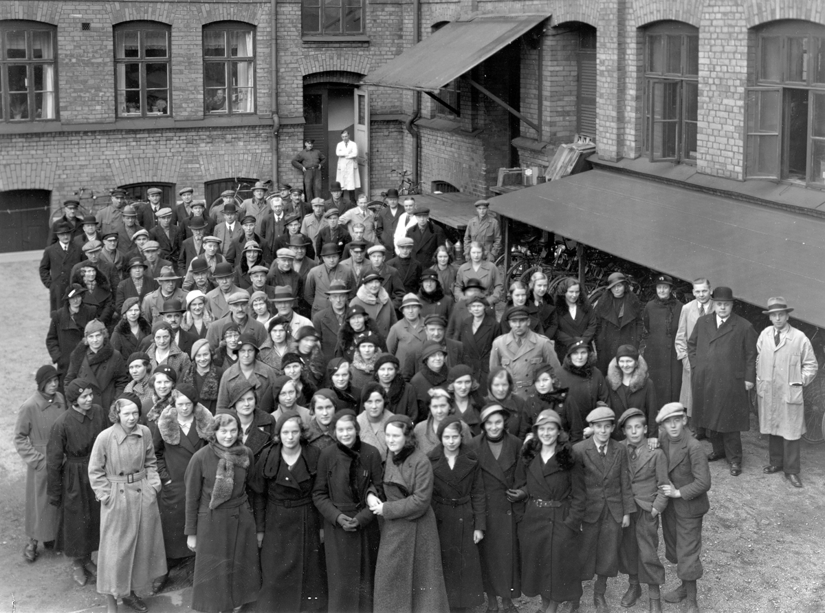 Örebro Skofabrik, skofabriksarbetare och fabriksbyggnad.