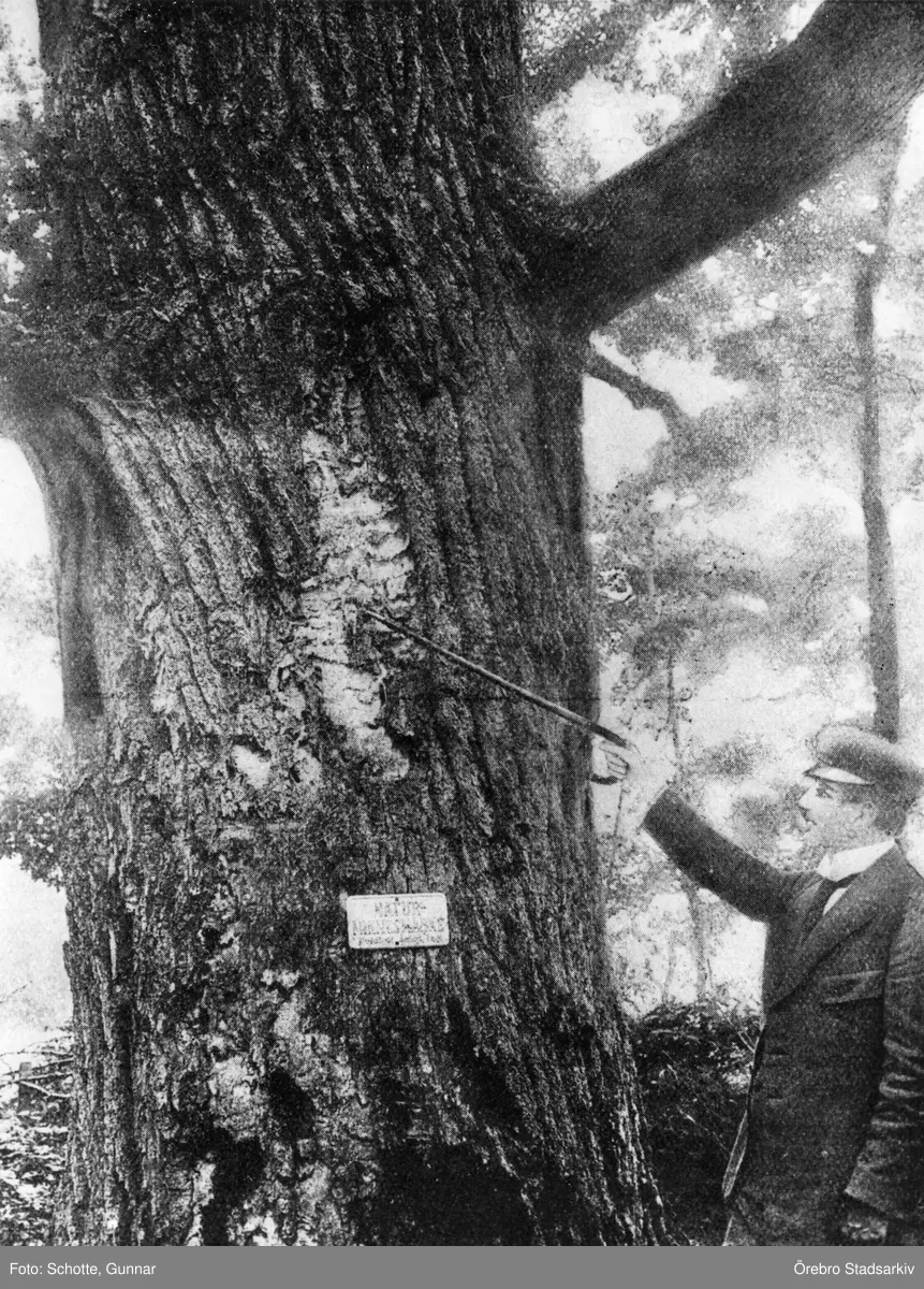Man pekar på lav på Halltorps-eken vid Stora Ekbacken i Öland, 1921-07-03