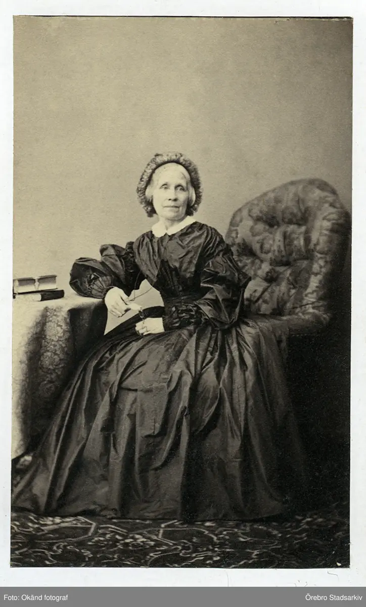 Porträtt av äldre kvinna sittande i fåtölj, 1870-tal