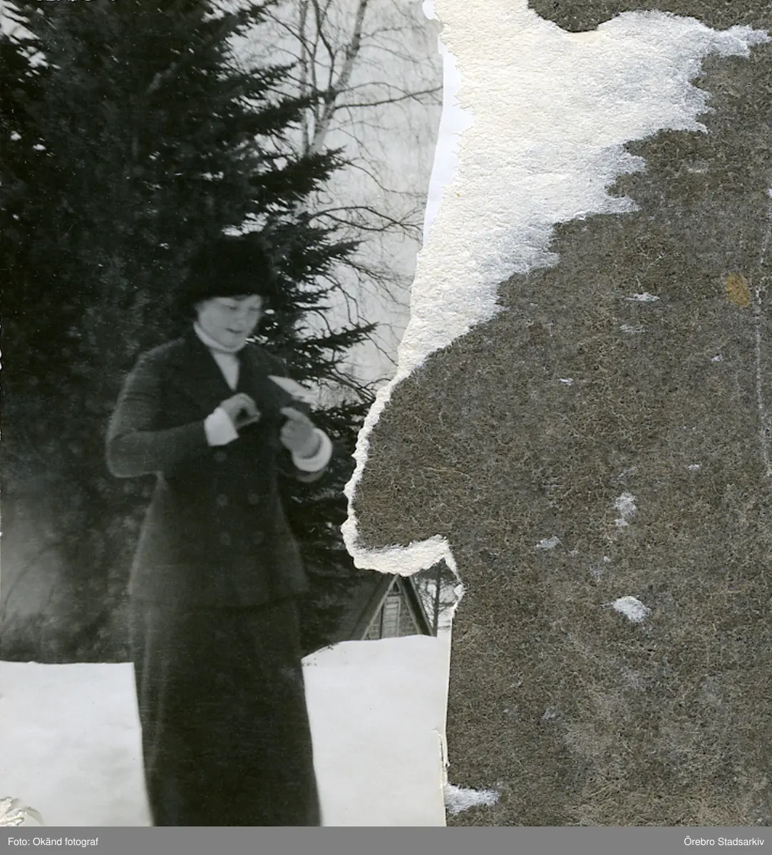Ung kvinna med kamera vid Ulvshyttans herrgård, påsken 1915