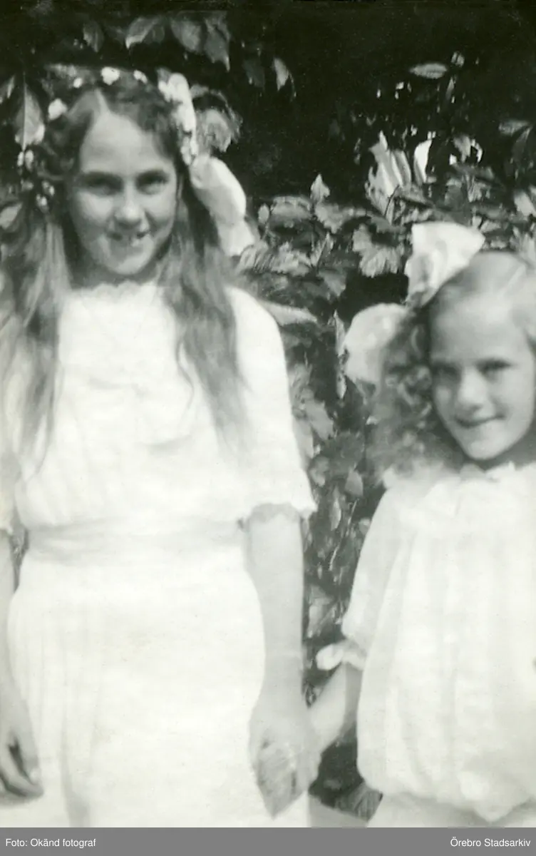 Två unga tärnor vid bröllopet på Ulvshyttans herrgård, 1915-08-30