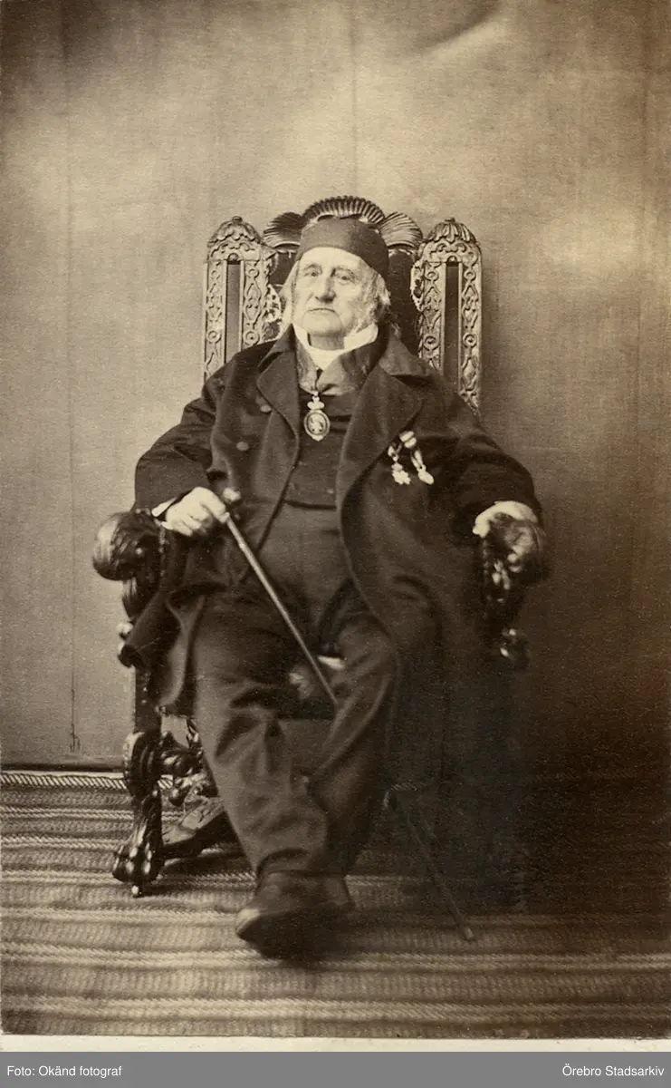 Porträtt av Thure Gyllenkrok sittande i kavaj, fez och käpp, 1862