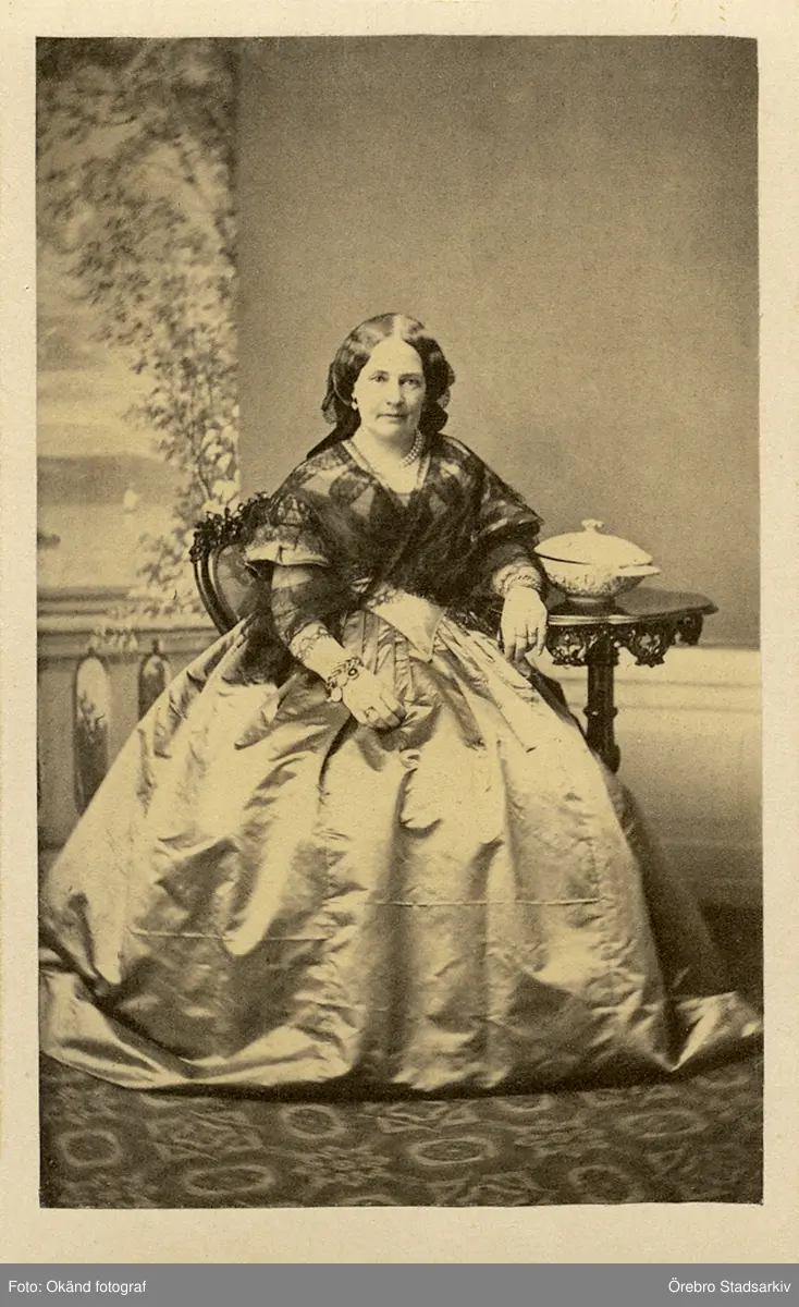 Porträtt av grevinnan Sofia Bonde sittande vid bord, 1860-tal