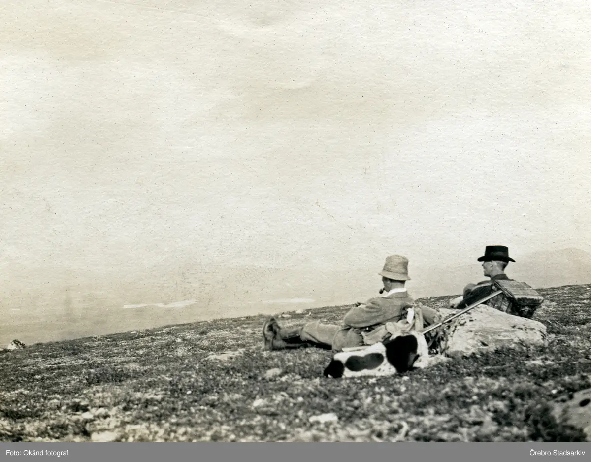 Två jägare tar paus i svenska fjällen, ca 1925