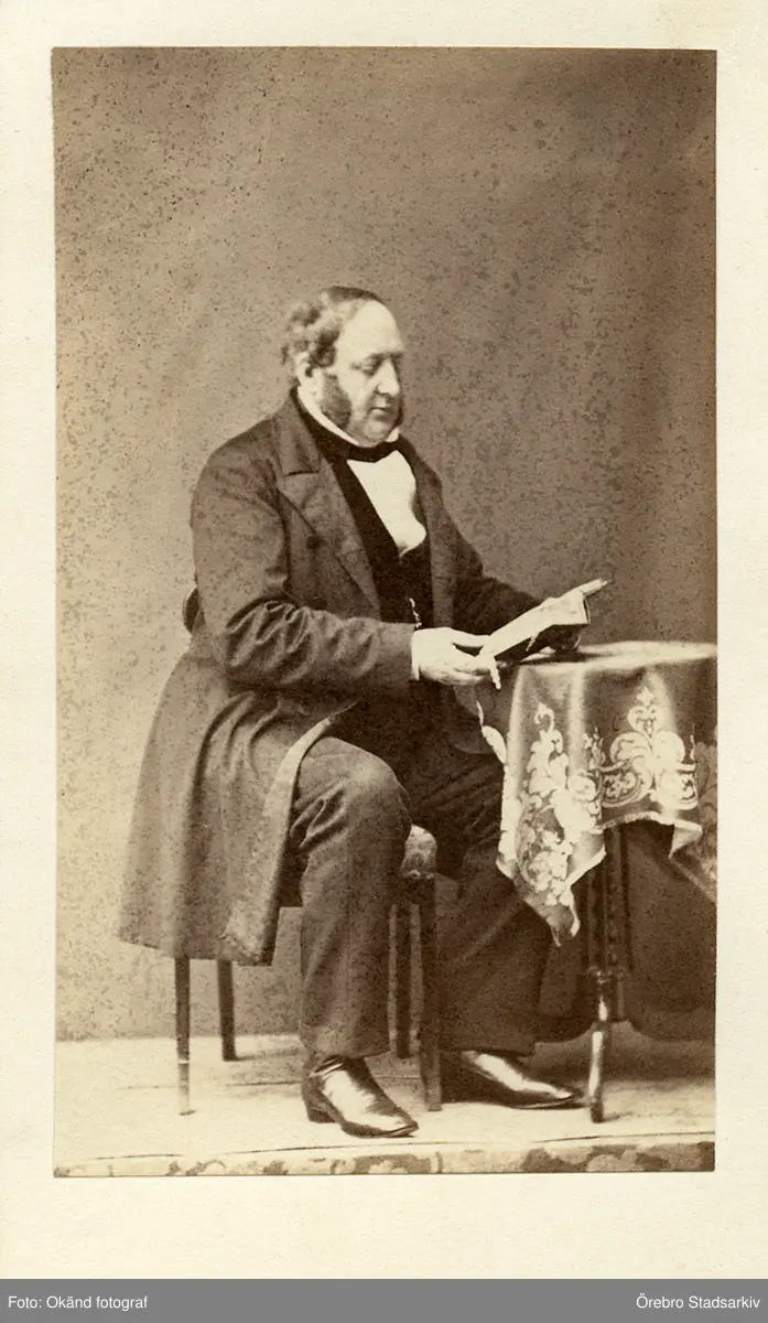 Porträtt av Baron Knut Bonde som läser vi bord, ca 1865