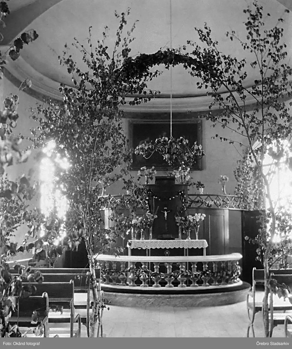 Blomsterdekoration vid altaret i Brevens kyrka, 1910-tal