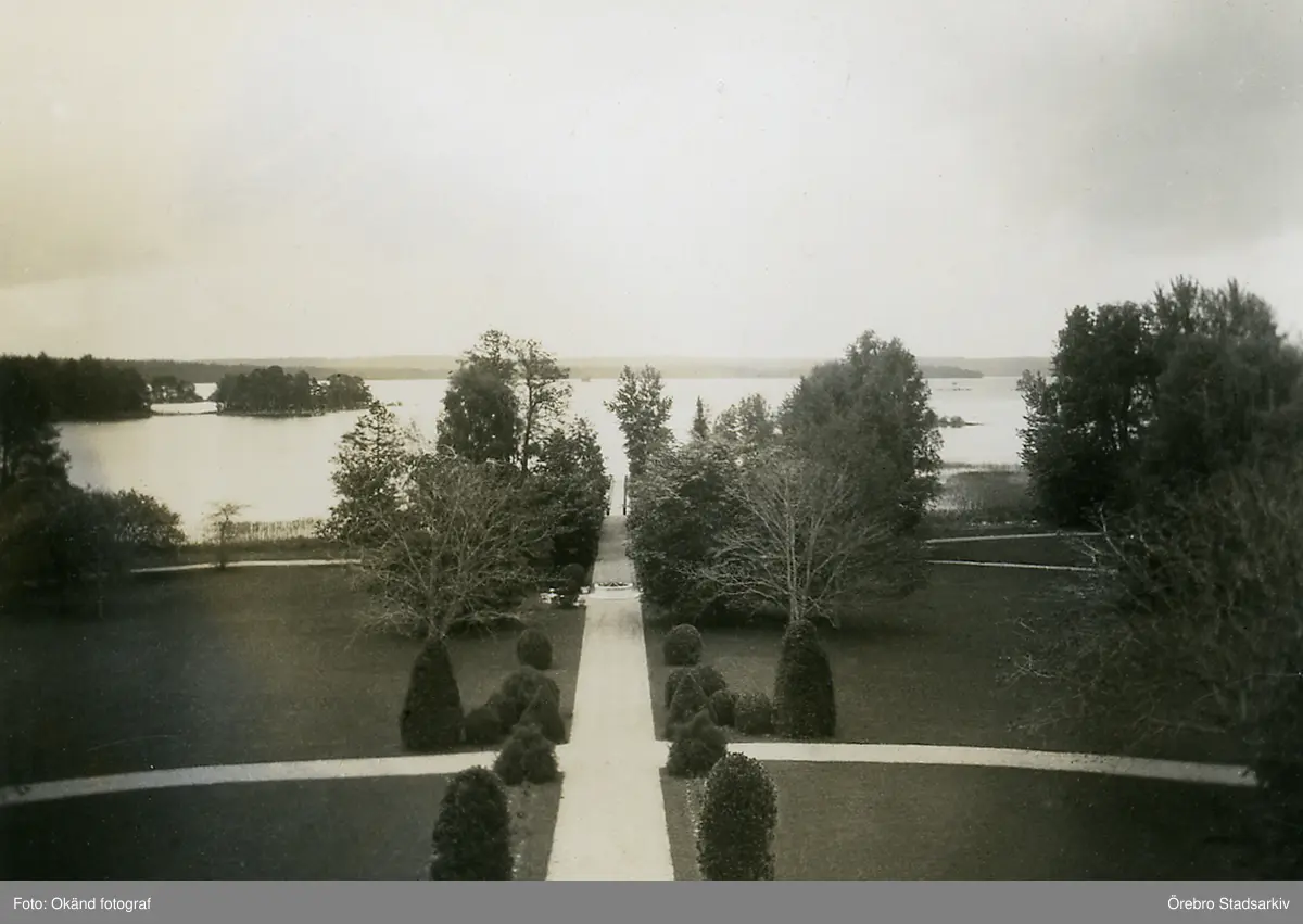 Parken på Bystad herrgård mot sjön Sottern, 1910-tal