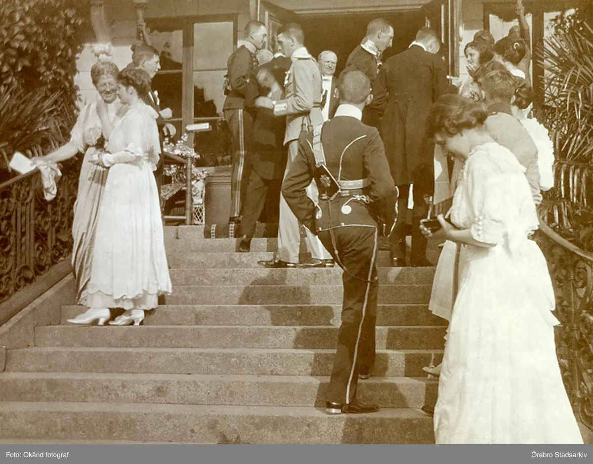 Bröllopsmingel på trappan till Färna herrgård, 1915-08-14