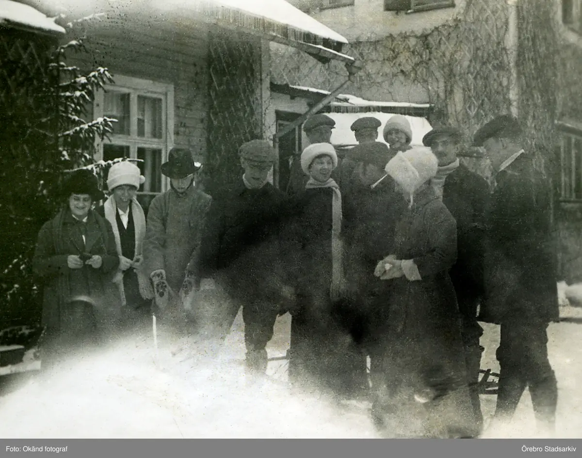 Uppställning framför kameran vid Ulvshyttans herrgård, påsken 1915