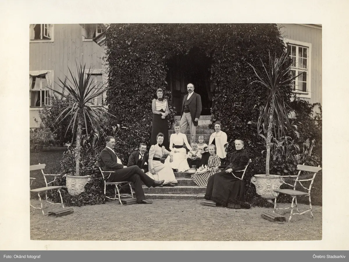 Johan och Ebba Gripenstedt med gäster på Bystad herrgård, ca 1900
