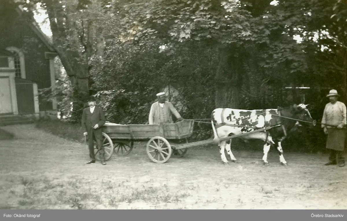 Vagn och oxe vid Bystad herrgård, 1910-tal